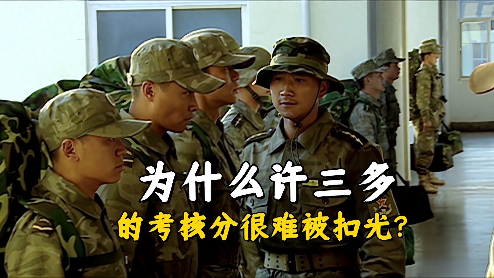 | 在《士兵突击》的剧情中,随着许三多和成才在演习时成功晋级,他们顺利进入到A大队参加考核。然而,在此次考核过程中,许三多的遭遇可谓十分凄惨,满分100分,他的考核分被扣得七零八落,分数是最低的;反观成才,却表现得稳如泰山,其考核分相当不错,有足够多的分数。于是,不少人开始担忧许三多的考核分会不会被扣完。其实,就这件事而言,我认为许三多的分很难被扣光。